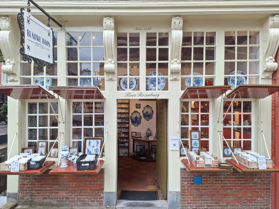 In een van de meest iconische gebouwen van Delft vind je Blauwe Roos Antiek, een sfeervolle winkel vol geschiedenis. Dit familiebedrijf wordt inmiddels gerund door de tweede én derde generatie, die het werk van Koos Rozenburg met trots voortzetten! Je vindt er een bijzondere collectie authentiek Delfts blauw, variërend van moderne stukken tot objecten van wel 300 jaar oud. Daarnaast verkopen ze ook andere unieke antieke items en curiosa met een verhaal. Een plek waar vakmanschap, traditie en liefde voor antiek samenkomen.