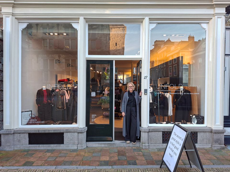 Unfold is een modeboetiek opgericht in 2014 door Mary in het prachtige stadscentrum van Delft. De winkel is gelegen in de levendige en steeds groeiende ‘markt’ en verwelkomt je met een gezellige sfeer. Je vindt er een mix van elegante, minimalistische en verfijnde items, geselecteerd door haar en haar team.