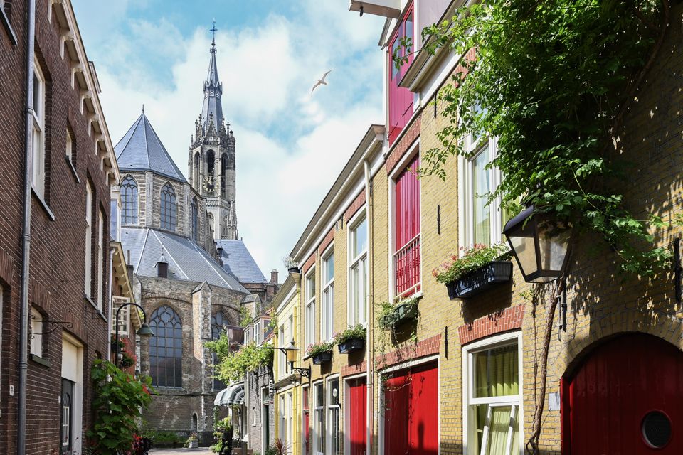 Niet alleen het kleurrijke straatbeeld maakt het de moeite waard, ook het zicht op de Nieuwe Kerk vanaf hier is een prachtig beeld. Fotoliefhebbers kunnen hier hun hart ophalen!