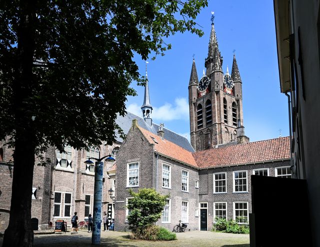 We starten onze route op een iconische Delftse locatie, waar geschiedenis en middeleeuwse architectuur een beeldschoon plaatje vormen.