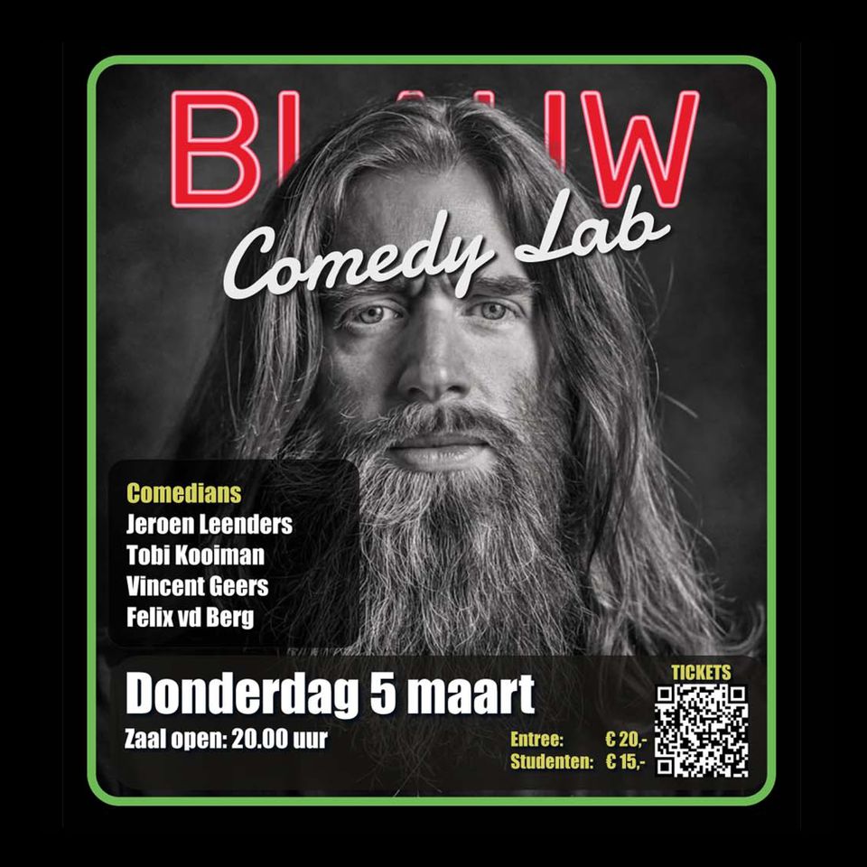 Na een zeer succesvolle en volledig uitverkochte voorstelling op 22 januari, is het tijd voor alweer de 4e editie van Blauw ComedyLab! Opnieuw met een geweldige line-up van opkomende en gevestigde comedians!