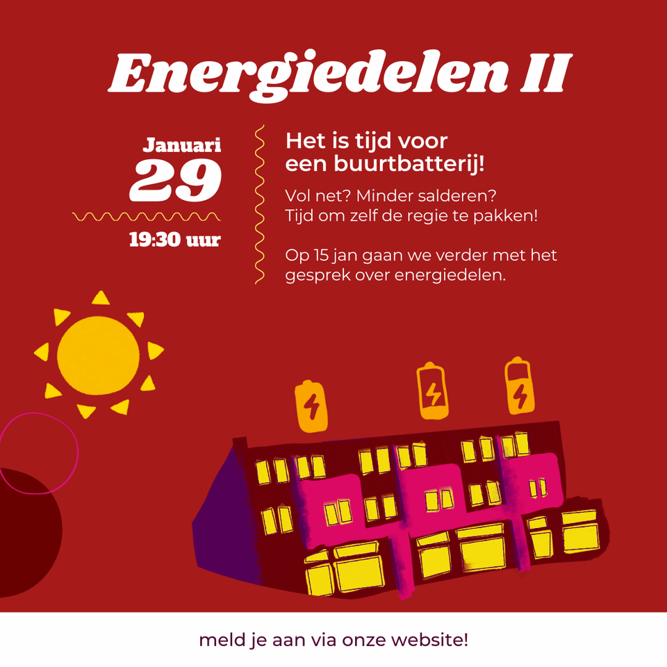 Tijdens de avond bespreken we op een toegankelijke manier de verschillende opties: van persoonlijke of buurtbatterijen tot mini-energiecoöperaties. We laten zien hoe bewoners samen meer grip kunnen krijgen op hun energieverbruik en -opslag, en welke stappen er mogelijk zijn binnen de nieuwe energiewetgeving die energiedelen steeds meer faciliteert.